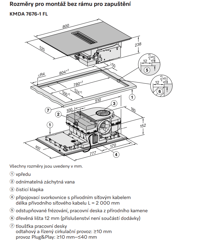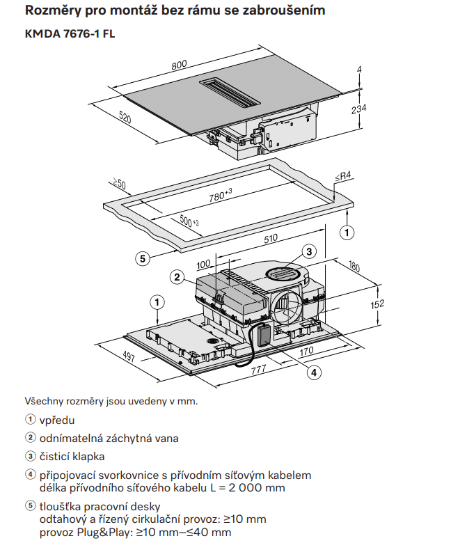 MIELE KMDA 7272 FL-U - Indukční varná deska s integrovaným odsavačem par s motorem Silence a 4 varnými zónami pro režim cirkulace. Šířka 80 cm, bez rámu pro zapuštění. DOPRAVA zdarma